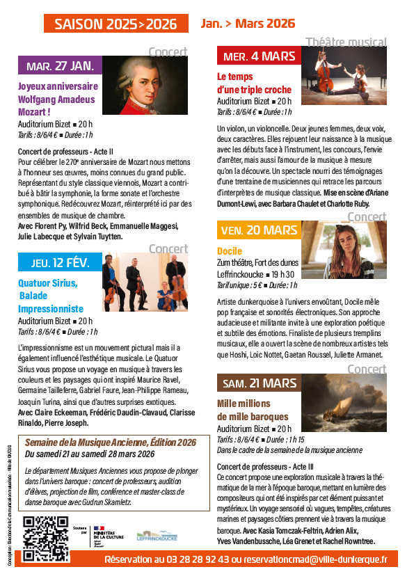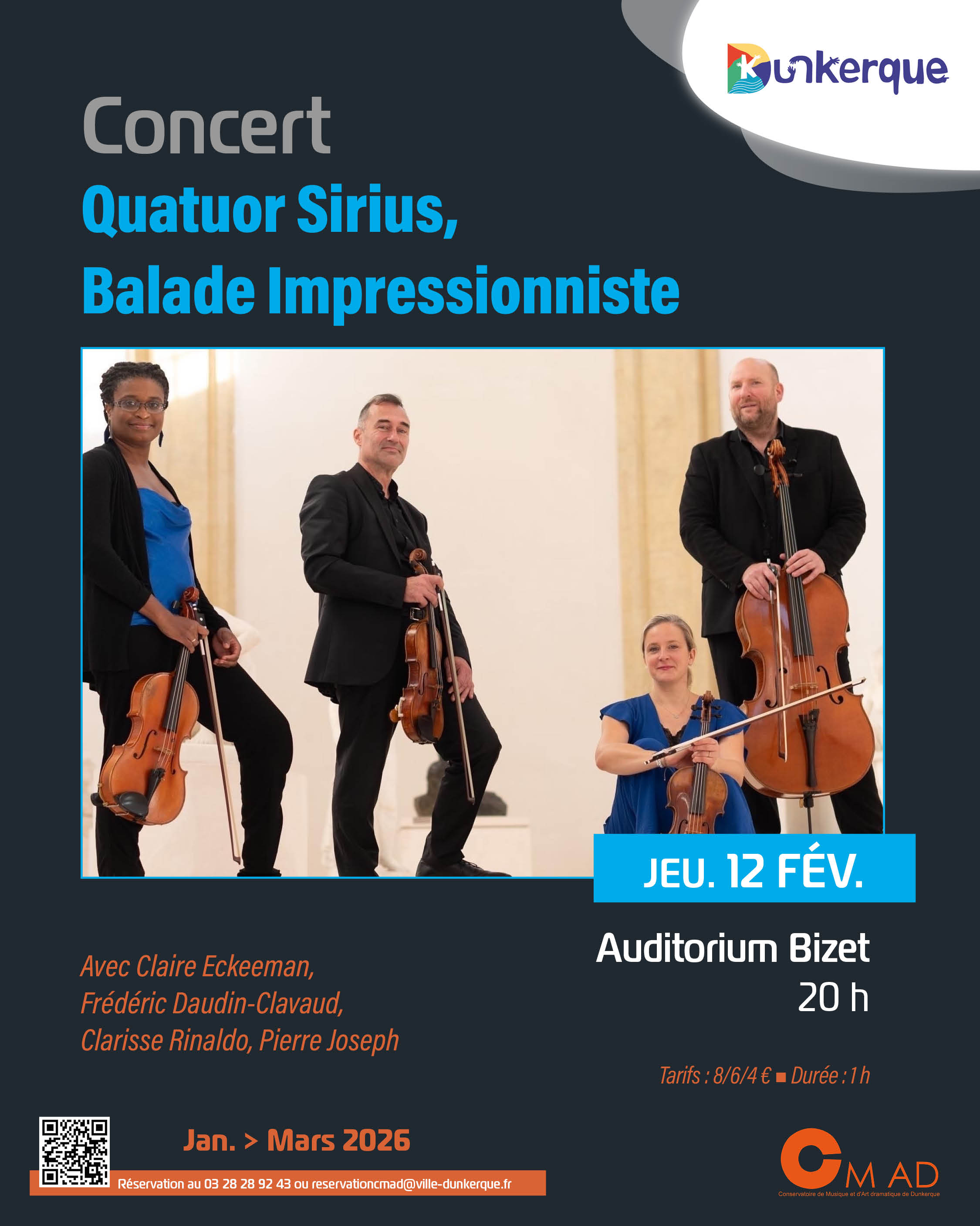 Réservation au 03 28 28 92 43 ou par mail : reservationcmad@ville-dunkerque(dot)fr