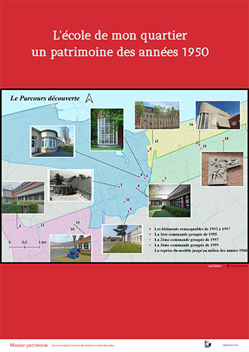 Laïque, gratuite et obligatoire, l’école connaît au XXème siècle un large développement et un généreux élan constructeur. Dès l’entre-deux-guerres, de nouveaux établissements voient le jour. Centrés sur le bien-être des enfants, ils sont dotés de larges classes équipées de tout le confort moderne. La circulation de l’air, la lumière, l’hygiène et l’espace en sont les éléments fondateurs. Interrompu par la guerre, ce mouvement sera repris et amplifié dans les années 50, où six millions d’écoliers devront rejoindre les bancs de l’école.
