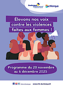 À l’occasion de la Journée internationale pour l’élimination des violences faites aux femmes, la Ville et la Communauté urbaine de Dunkerque se mobilisent du 20 novembre au 6 décembre. Ciné-débats, théâtre, expositions, rencontres et soirées solidaires : ensemble, élevons nos voix pour dire non aux violences et soutenir la parole des femmes.