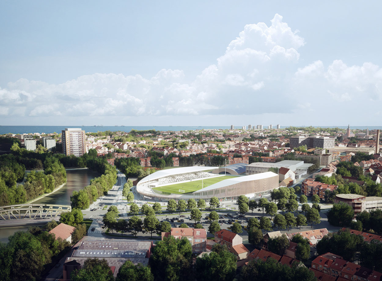 La loi du 8 mars 1921, portant déclassement de l’enceinte fortifiée, permet enfin à la Ville de Dunkerque d’engager des travaux d’extension urbaine. Dès le 21 juin 1927, le conseil municipal décide de créer un terrain de sport en entrée de ville, sur l’espace libéré par la suppression du square Jacobsen du côté de Rosendaël.
