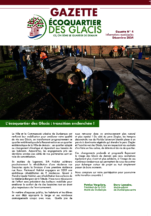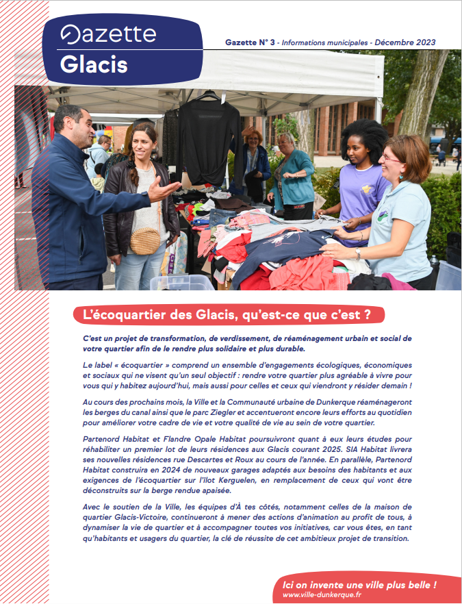 Actualités 2025 :La Communauté Urbaine et la Ville de Dunkerque réaménageront le parc Ziegler : un parc étendu et ouvert sur le quartier des Glacis. Vous pouvez dès à présent observer le début des travaux, avec la déconstruction des hangars sur la friche de la rue de Floride.